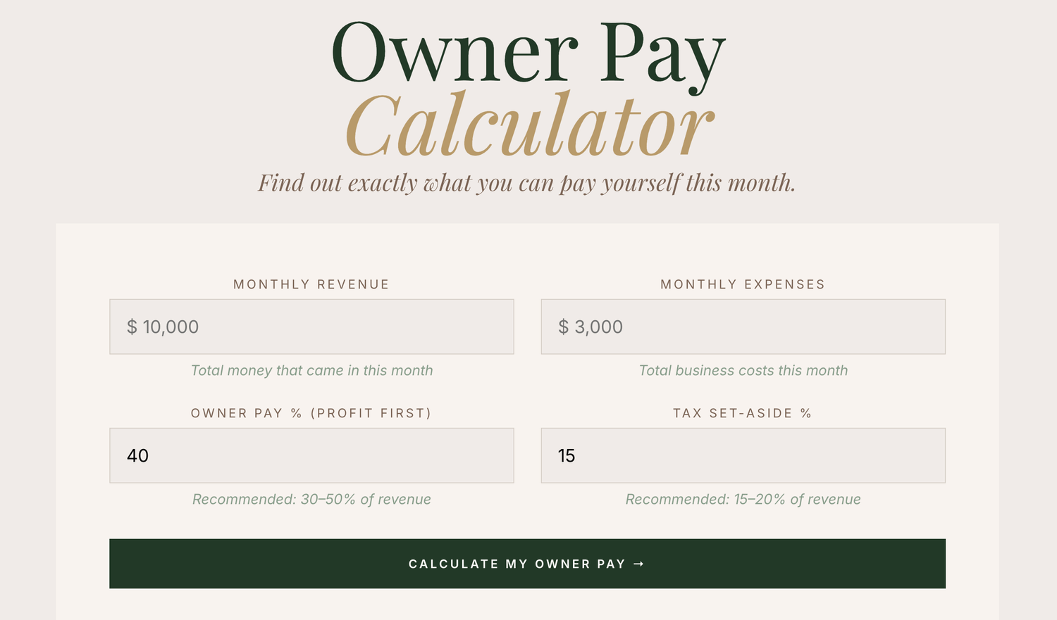 Enter your email to access the free Owner Pay Calculator